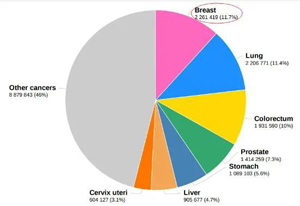 2020年全球常見新發(fā)癌癥類型及占比